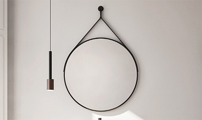 Pendant mirror with a black sheet metal frame, black eco-leather strap with black metal support. Total height 99 cm for Γ 60.3 cm Total height 114.6 cm for Γ 80.5 cm |