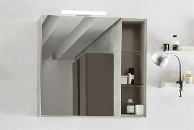 Oslo mirror with 2 mirror doors 2 Win spotlights (art. V119) 1 open compartment