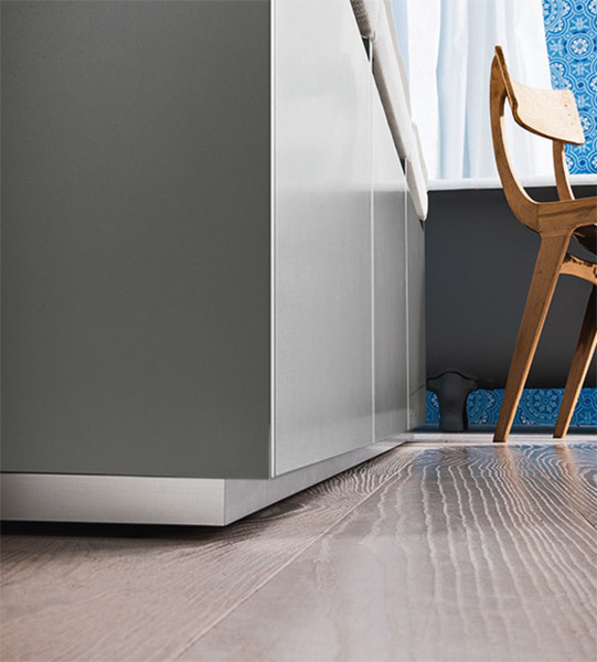 Plinth with three-sided frame, H 2 cm in aluminum With adjustable feet. |
