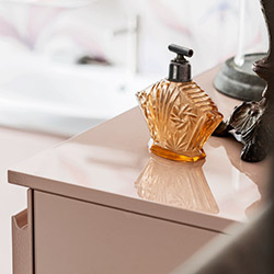 The tops in extralight glossy and satin glass with integrated washbasin, 1 cm thick, feature a flat polished edge and are available in 56 colors. They undergo a water-based coloring with polyurethane protection. The paint used is a water-based, pigmentable, anti-yellowing single-component suitable for glass painting. Any small imperfections and differences from the sample should be considered a characteristic of the artisanal processing that makes each individual piece unique in its kind.
