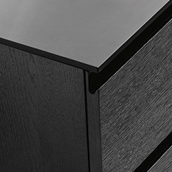 SWISSCDF is a wood fiber panel, compactly compressed (>1,000 kg/m3) and dyed black. With its support plate and multilayer structure, SWISSCDF sets new standards in the interior furniture sector in terms of both design and construction. Stability, scratch resistance, splash resistance, and low flammability characterize this natural wood material.