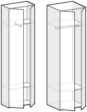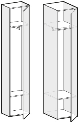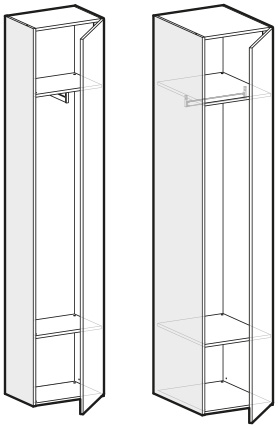Coat rack tall unit 1 door right-left with clothes rail: for D 37-50 in depth and for D 62-67.5 in width. Open compartment: 151.5 cm |