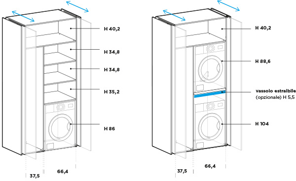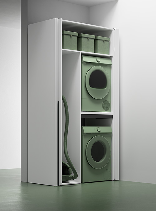 Tall unit with 2 doors for washing machine + dryer (internal right-left) recessed door opening