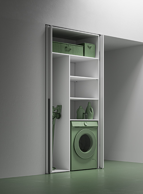 Tall unit with 2 doors for washing machine or dryer (internal right-left) recessed door opening