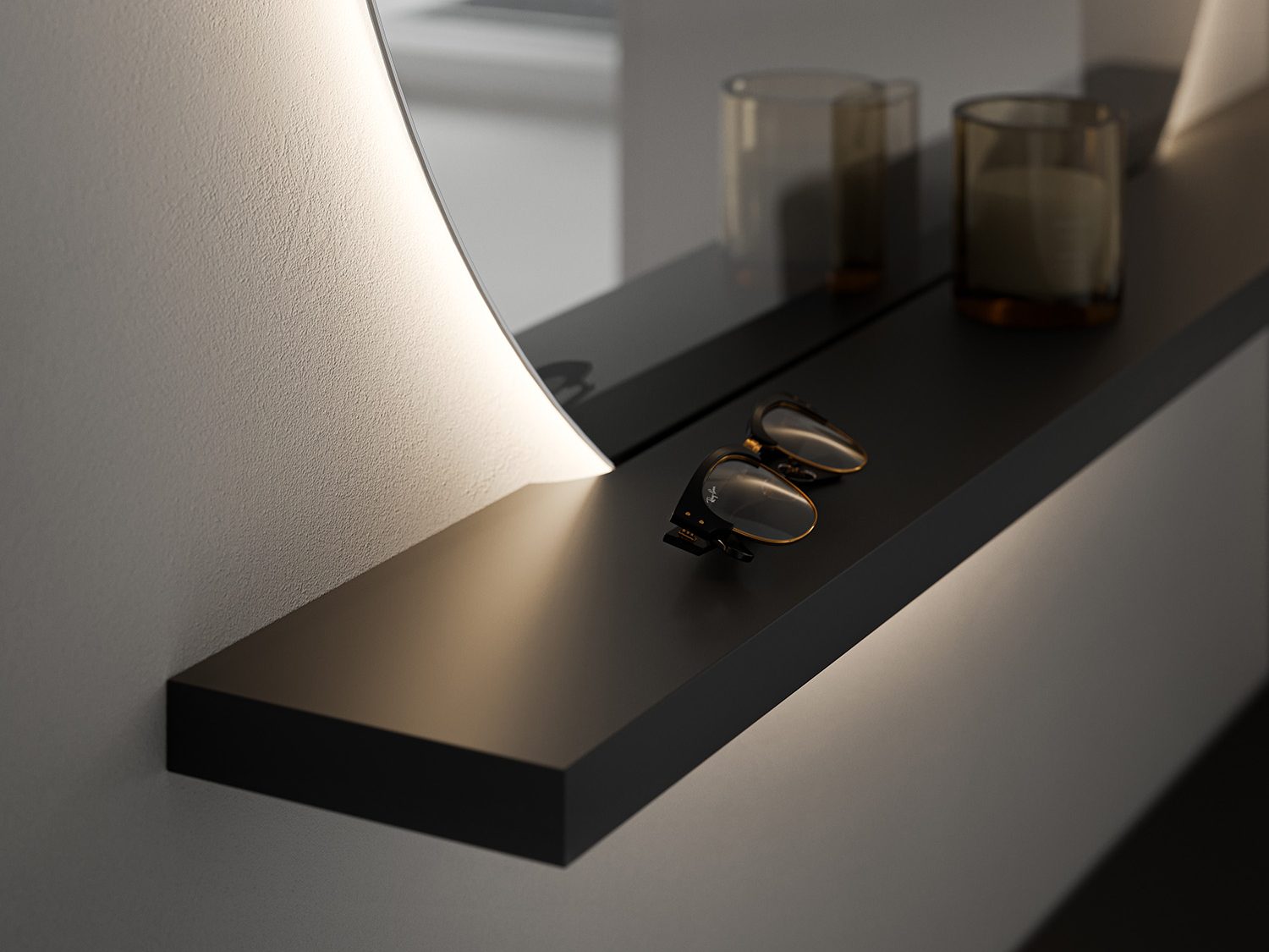 Shaped shelves for Light mirrors