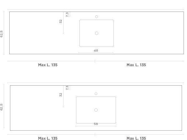 Washbasin units: min. W 60 x D 62 cm for basin W 50 min. W 70 x D 62 cm for basin W 60 Inner basin size: W 48 x D 40 x H 20 cm W 58 x D 40 x H 20 cm