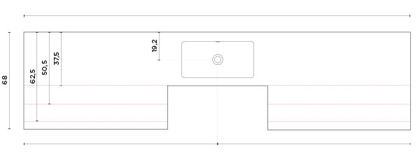 Washbasin unit: min. W 70 x D 62 cm Inner basin size: W 51,3 x D 26,7 x H 22,6 cm