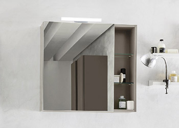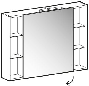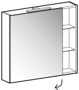Oslo mirror with 1 mirror door right-left Win spotlight (art. V119) 2 open compartments