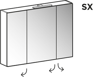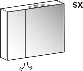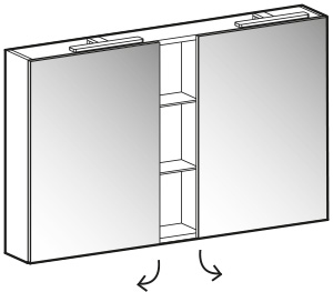 Oslo mirror with 2 mirror doors 2 Win spotlights (art. V119) 1 open compartment