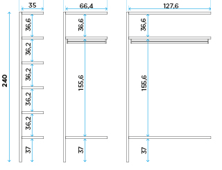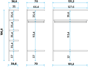 | 196.8 | 68 | 131.2 | AX0G | | | Open structure with clothes rail | | |