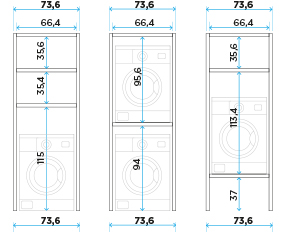 | 240 | 63 | 73.6 | AX19 | | | Open compartment washing machine unit with 3 shelves | | |
