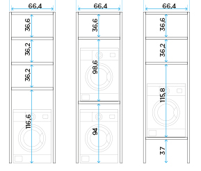 | 196.8 | 63 | 73.6 | AX0I | | | Open compartment washer or dryer with 2 glass shelves | | |