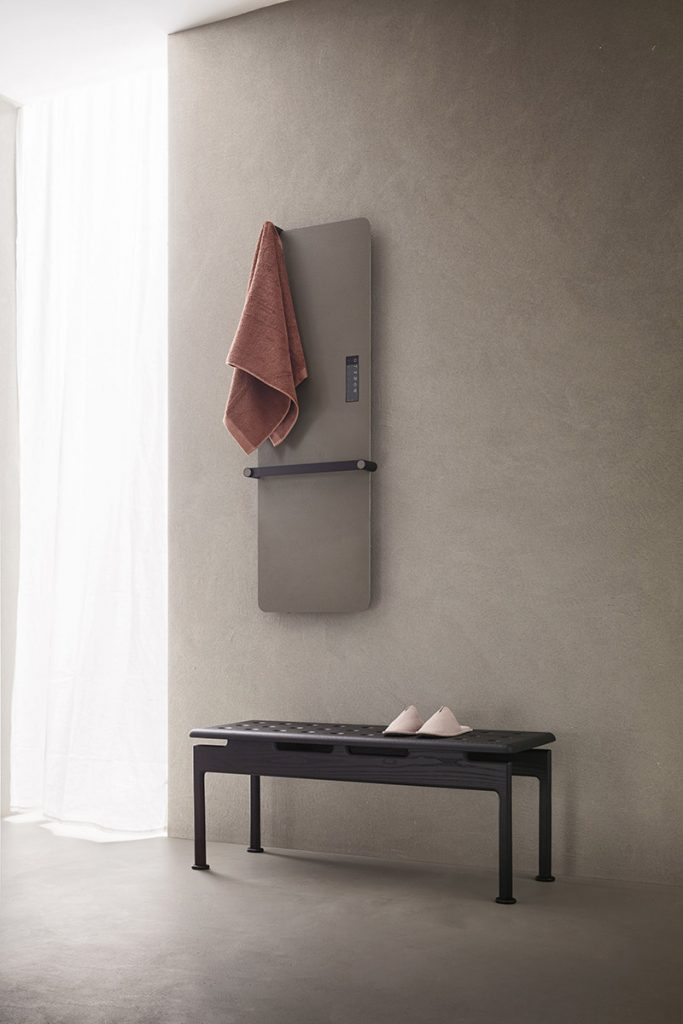 Rock Slim radiator in Geacril Laguna finish with Chronos black accessories
